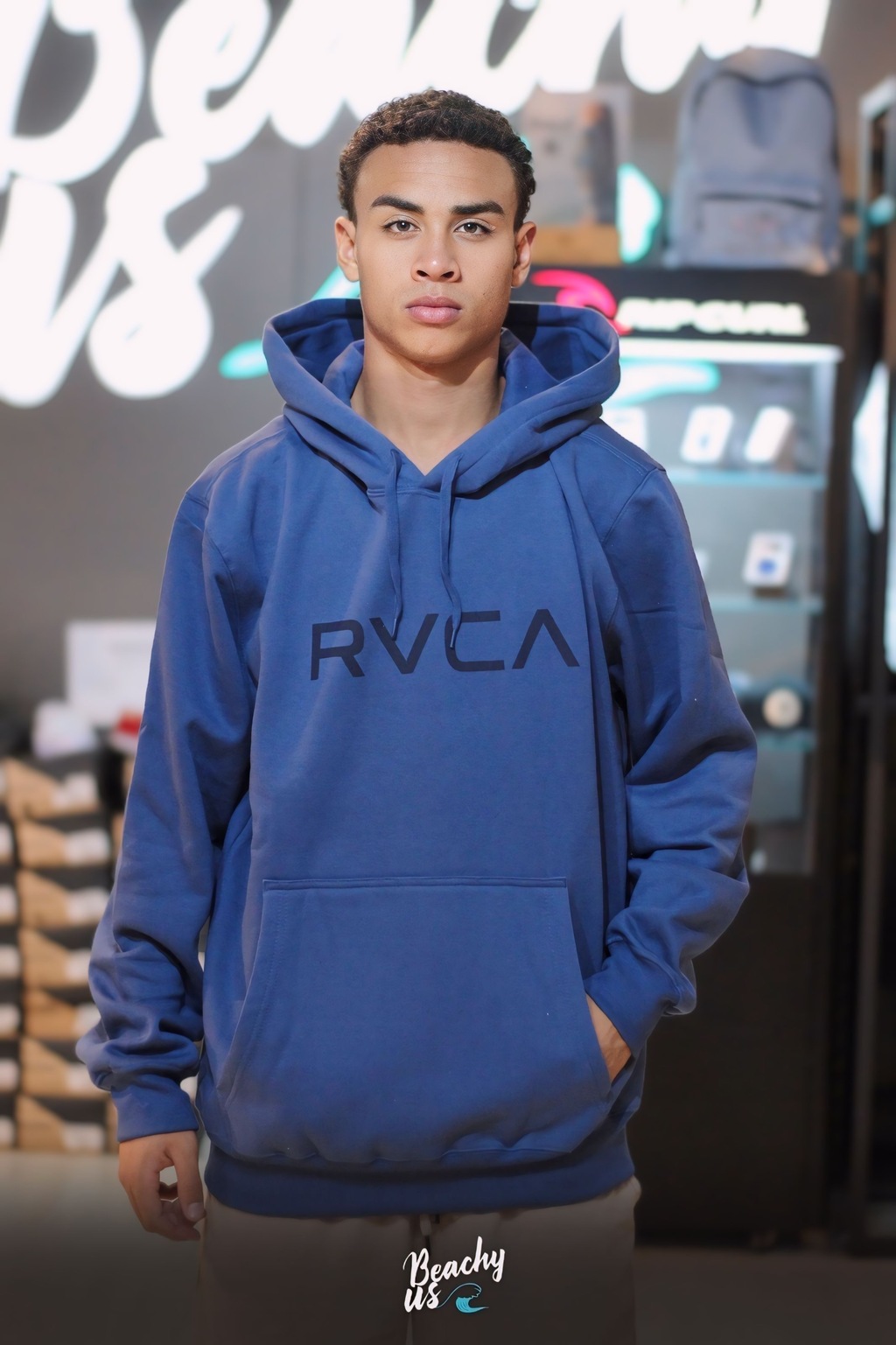 Possui composição de 50% algodão e 50% poliéster, capuz forrado com cordão de ajuste, bolso modelo canguru, estampa frontal em silk, e parte interna peluciada.